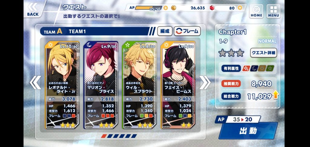 あんさんぶるスターズ!!MusicっぽいUIで中身は、簡単なFGOとA3!(出稼ぎシステム)とあんスタ(育成)っぽい感じ